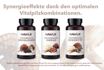 Die HAWLIK Vitalpilzmischungen vereinen verschiedene Vitalpilze mit ausgewählten Vitaminen und Mineralstoffen. Dadurch entsteht eine grosse Vielfalt an Nährstoffen, um Ihre Gesundheit zu fördern und erhalten.